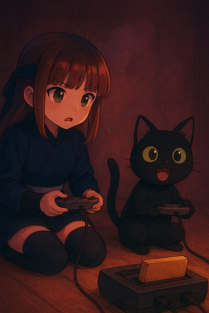 ほら、いつだったかボクとカエデがゲームしてる時のを筆者が描いたやつ。